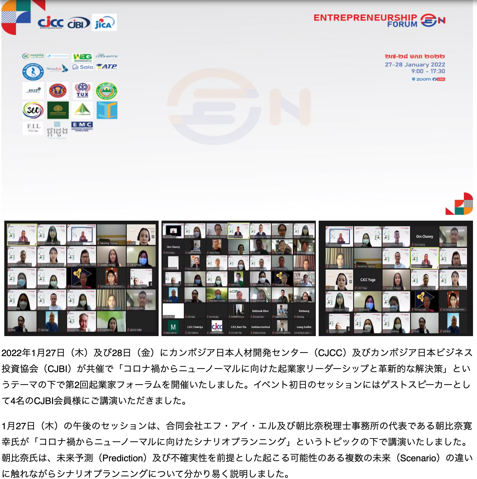2022年1月にカンボジアで開催された「Entrepreneurship Forum」にスピーカーとして参加しました。
